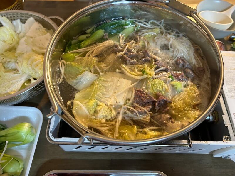 일정이 모두 끝났습니다. 저녁부터 비가 오기 시작하더라고요. 마침 저녁으로 준비한 메뉴가 샤부샤부라 맛있게 먹고 휴식을 취하였습니다. 울릉도 씨막걸리와 제가 육지에서 사간 보쉐를 함께 곁들여 먹었답니다. 다음날은 낮 12시 배로 울릉도를 떠나는 일만 있습니다. 비가 와서 오전 일정을 취소하고, 집으로 향합니다.