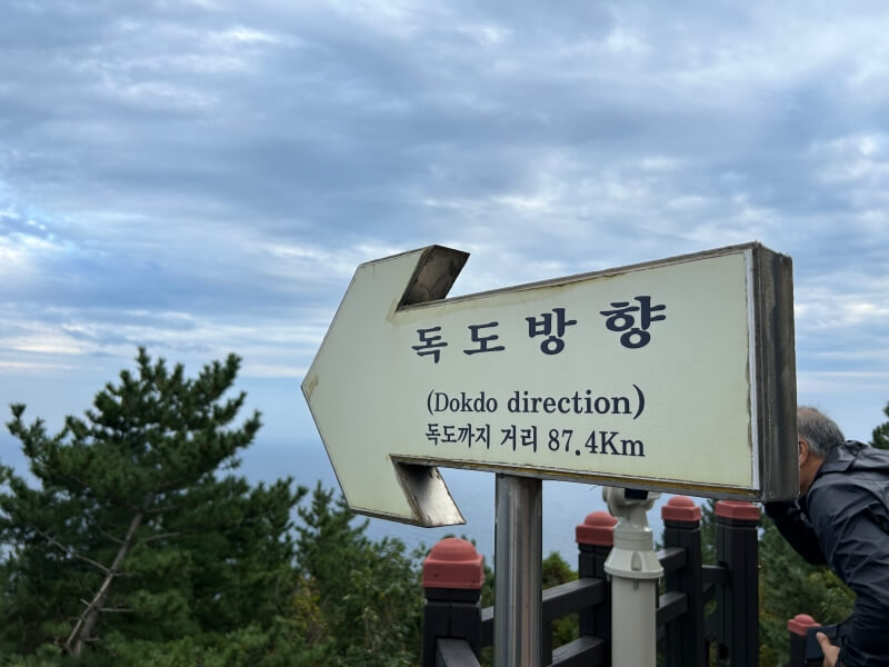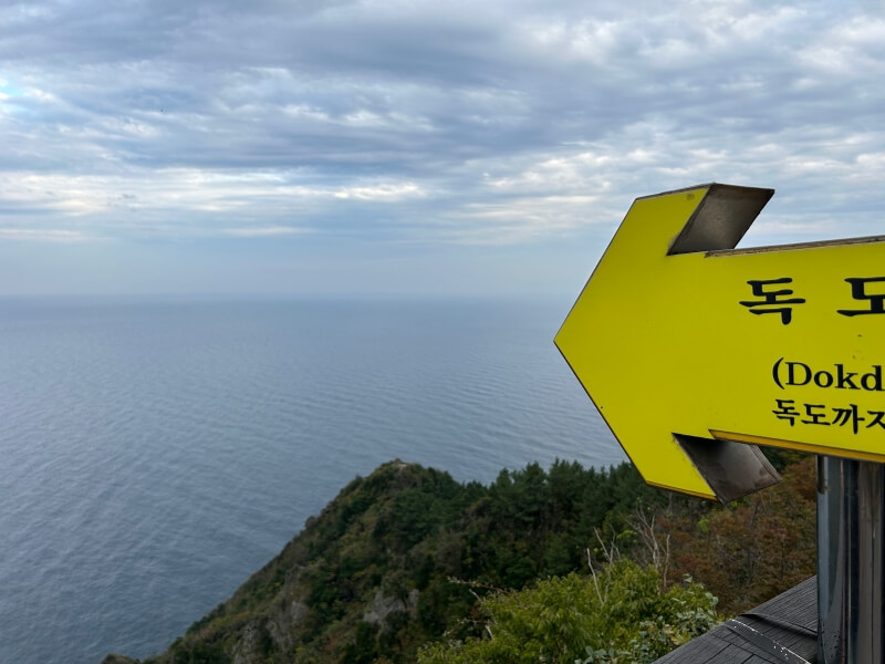 케이블카로 이용하면 5분 정도 걸어서 독도를 눈으로 관람할 수 있는 전망대가 있습니다. 망원경(?)으로 독도를 관찰할 수 있도록 만들어져 있습니다. 직관적이고 귀여운 표지판이 함께 있어요.