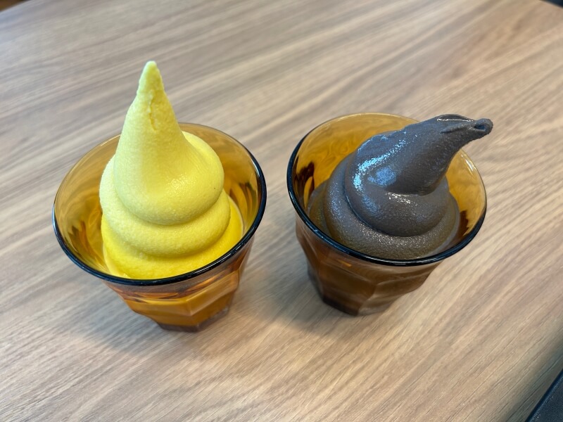 울릉도는 호박에 정말 진심인가 봅니다. 호박 맥주 호박 막걸리 호박 조청 호박 젤리 호박엿 호박호박호박...... 게다가 호박 아이스크림도 있습니다. 호박 아이스크림과 오징어 먹물 아이스크림을 사 먹었습니다. 저동커피 한편에는 울릉도에서만 살 수 있는 귀여운 기념품들이 있습니다. 저는 강치 열쇠고리 샀는데 너무 귀여웠어요. 좀 더 앞쪽으로 배치했으면 좋겠어요. 화장실 갈 때 발견해서 못 볼 뻔했거든요. 너무 예쁜 게 많은데 뒤쪽에 있으니 잘 안보였어요.