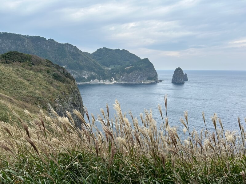 가을에 갔더니 억새가 만발입니다. 뒤쪽으로 보이는 주상절리와 억새의 조합이 아름답습니다.