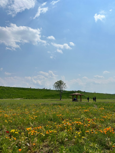 날이 좋아서인지 꽃이 많이 없지만 충분히 아름답고, 빨간 양귀비는 없었지만 노란색 금계국이 예쁘게 피어 있습니다. 함안은 높은 건물이 없고, 너른 들판이 있어 올 때마다 마음이 뻥 뚫리는 기분이 들어요.